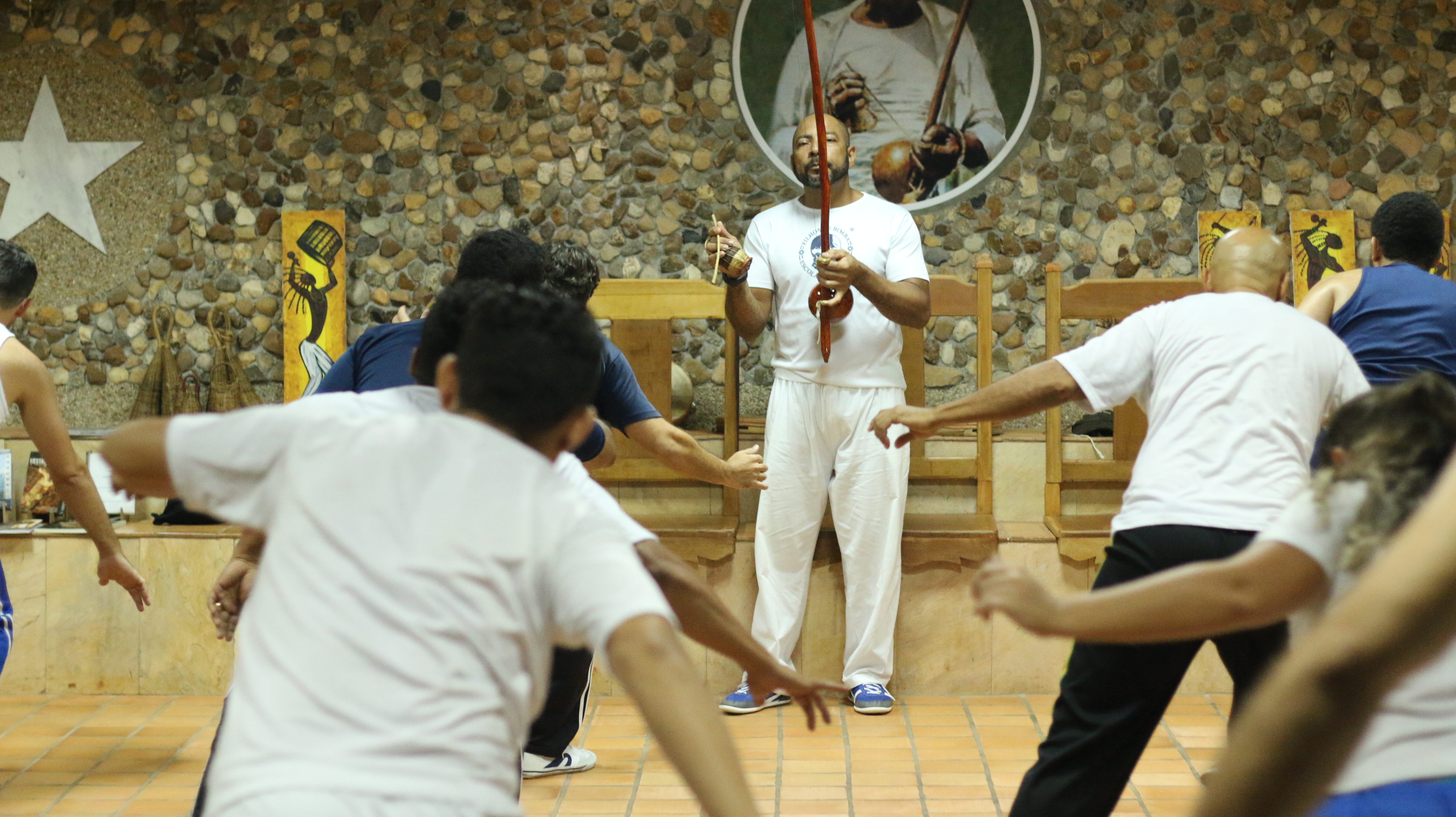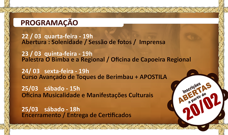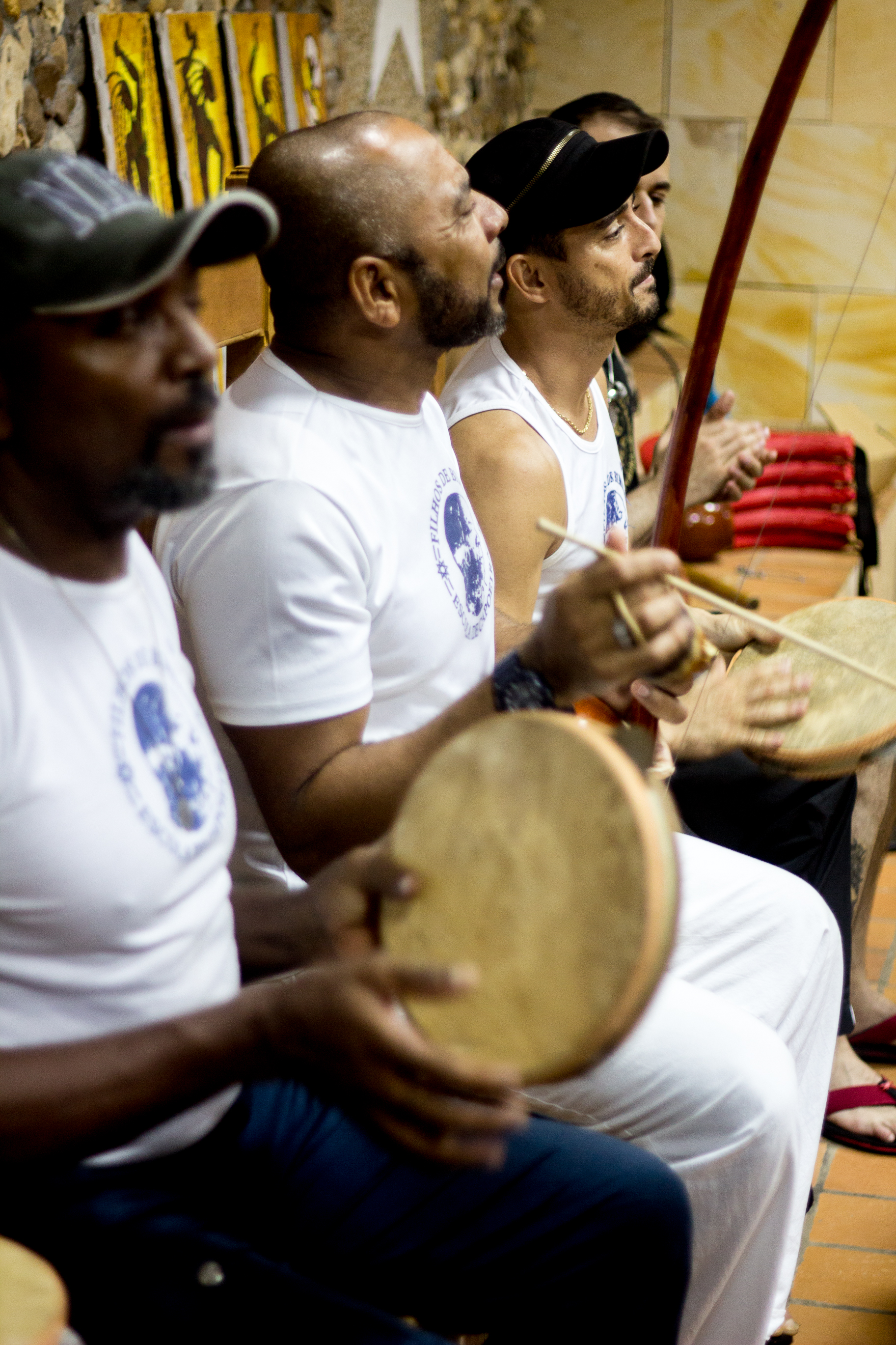 Sabemos que somos todos contemporâneos nas artes do maculelê e da puxada de rede. Os mestres Nenel, Canguru e Preguiça vão promover, além das batidas de atabaque e demais instrumentos, a plástica baiana dos movimentos. Sugestões de canto, coral e evoluções (danças) rechearão a oficina do dia-a-dia na Bahia em Ribeirão Preto.